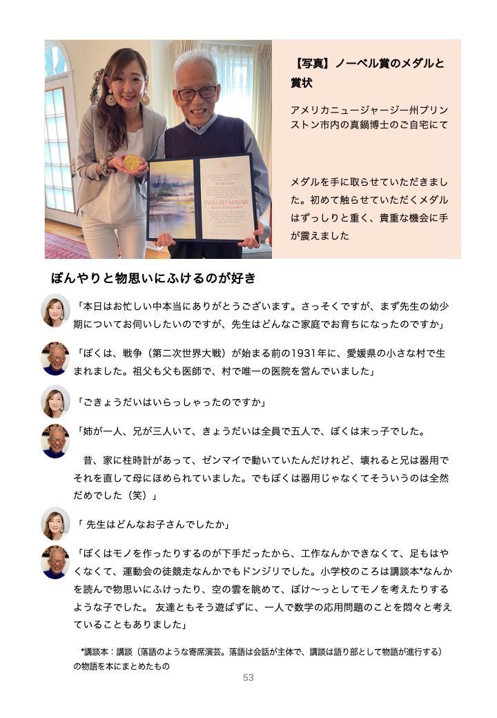 本書の出版の第二版にあたり、2021年に世界で初めて気象分野でノーベル賞を受賞された真鍋淑郎博士のインタビュー記事を掲載させていただきました。真鍋博士は、戦後間もない混沌とした時代に渡米され、さまざまな問題にぶつかりながらも解決策を模索され、新しい研究分野を切り開き、誰も到達できなかった偉業を世界で最初に成し遂げられました。博士が進まれた未知の世界への果敢なる挑戦は、これからこどもたちが迎える未知の世界への挑戦への力強い勇気と支えになるものと考えます。インタビュー記事から何かを感じ取り、これからを生き抜くヒントとしてもらえたらこれ以上の喜びはありません。博士とのご縁を導いてくれた大学院からの親友・プート真智子さん、ご自宅に快くお招きしてくださった信子夫人、そしてなにより本書の趣旨に賛同してくださり、インタビュー記事の掲載を快諾してくださった真鍋淑郎博士にこの場を借りて厚くお礼を申し上げます。