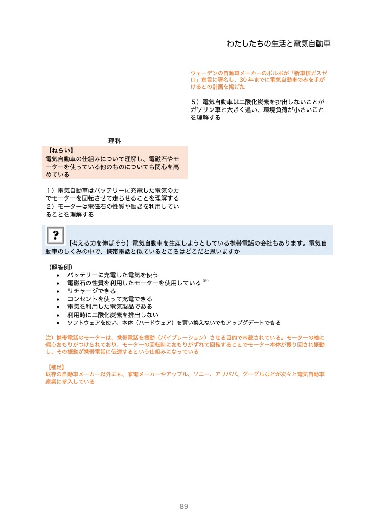 考える力を伸ばそうコーナー 電気自動車のしくみなどの解説が収録されています